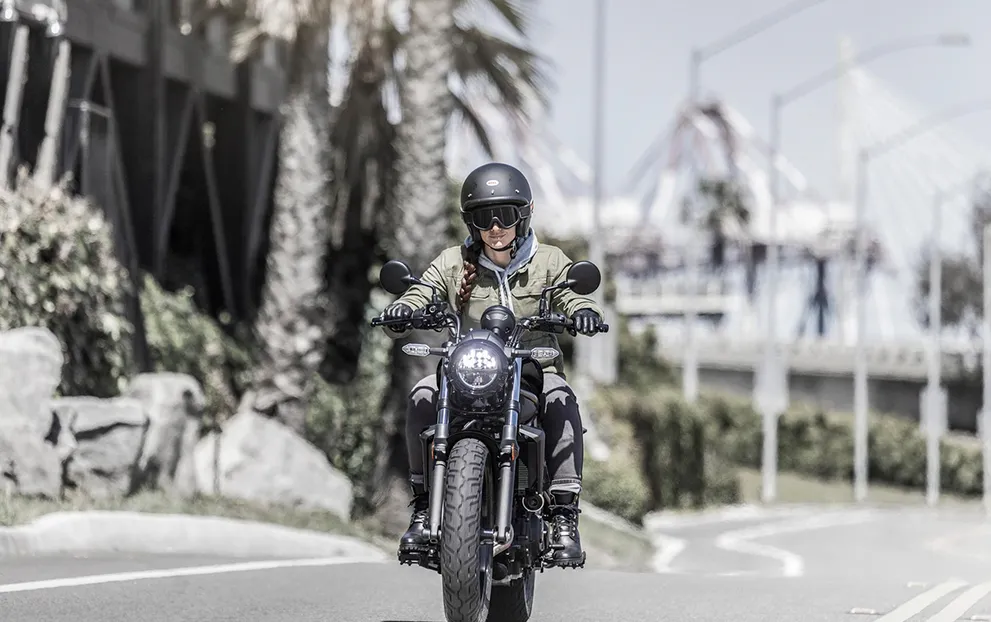 O painel de instrumentos LCD compacto, redondo e totalmente digital oferece um toque moderno que complementa o estilo autêntico da Eliminator 500. O layout altamente legível inclui um conta-giros estilo barra e indicador de posição de marcha – lembretes visíveis do potencial de pilotagem ativa da Eliminator 500.